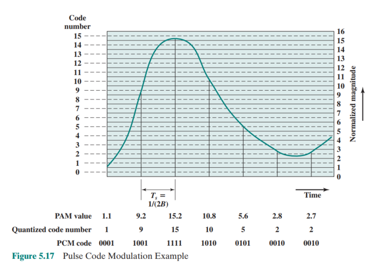 음성 데이터가 4000Hz 미만의 주파수로 제한될 경우 음성 신호를 완전히 특성화하기에 초당 8000개의 샘플로 충분할 것이다. 그러나 이러한 샘플은 PAM(Pulse Amplitude Modulation) 샘플이라고 하는 아날로그 샘플입니다. 디지털로 변환하려면 이러한 아날로그 샘플 각각에 이진 코드가 할당되어야 합니다.