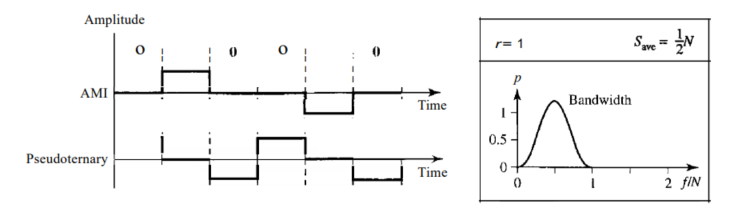 Bipolar 인코딩에는 양, 음, 0의 세 가지 전압 레벨이 있다.