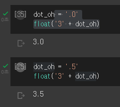 소수로된 문자열을 넣거나 소수를 넣으면 float으로 형변환을 한다.