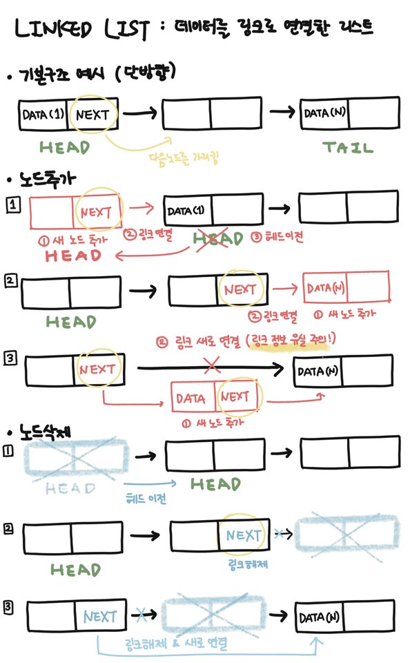 아래는 단방향 연결 리스트의 예시로 그린 그림입니다.