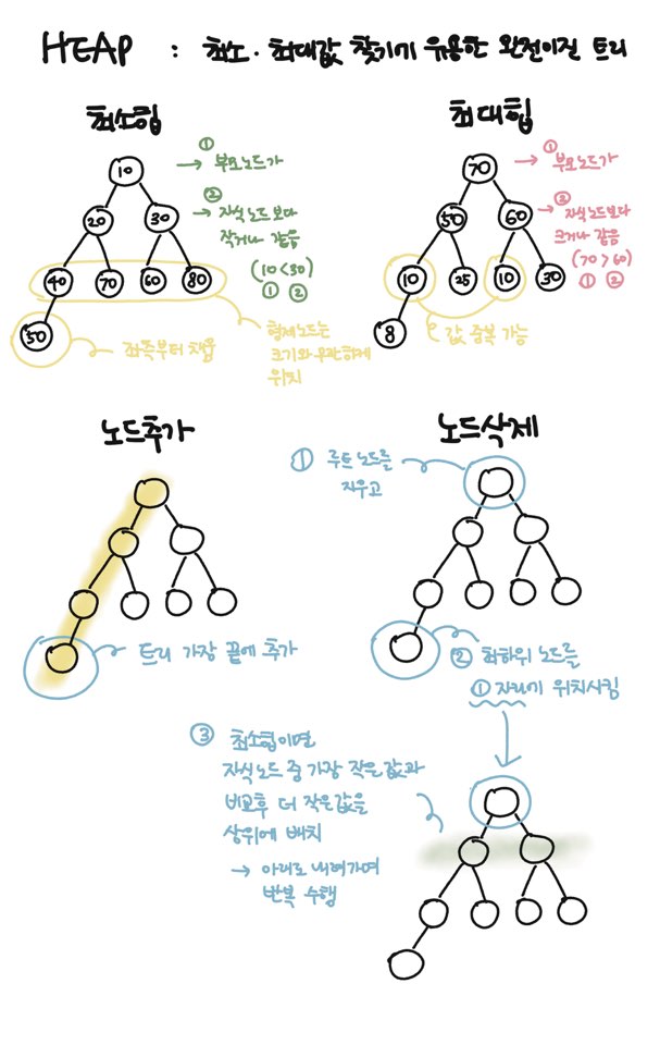 힙은 특정한 순서 규칙을 따르는 트리 기반의 자료 구조입니다. 가장 크거나 가장 작은 값을 효율적으로 찾거나 제거할 수 있습니다.