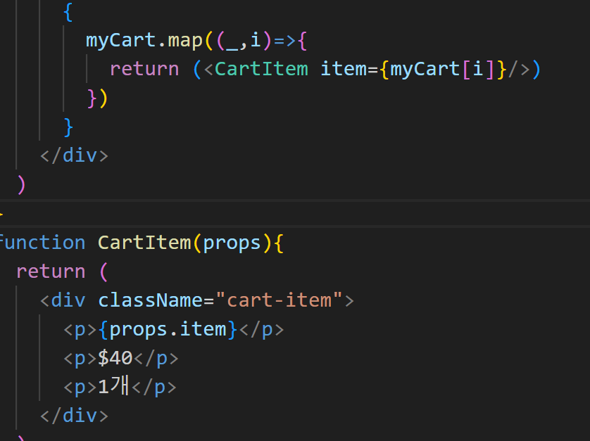 이렇게써줘야 [ <div>, <div>, <div> ] 이렇게 반환이 돼서 HTML이 보임