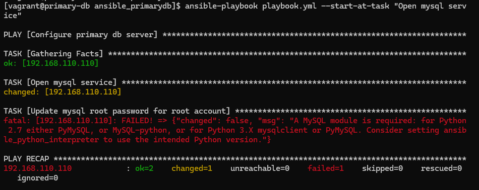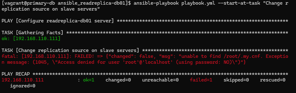 Ansible이 MySQL 모듈을 사용하여 MySQL에 접속할 때 필요한 인증 정보(login_user 및 login_password)가 제공되지 않았을 때 발생합니다.