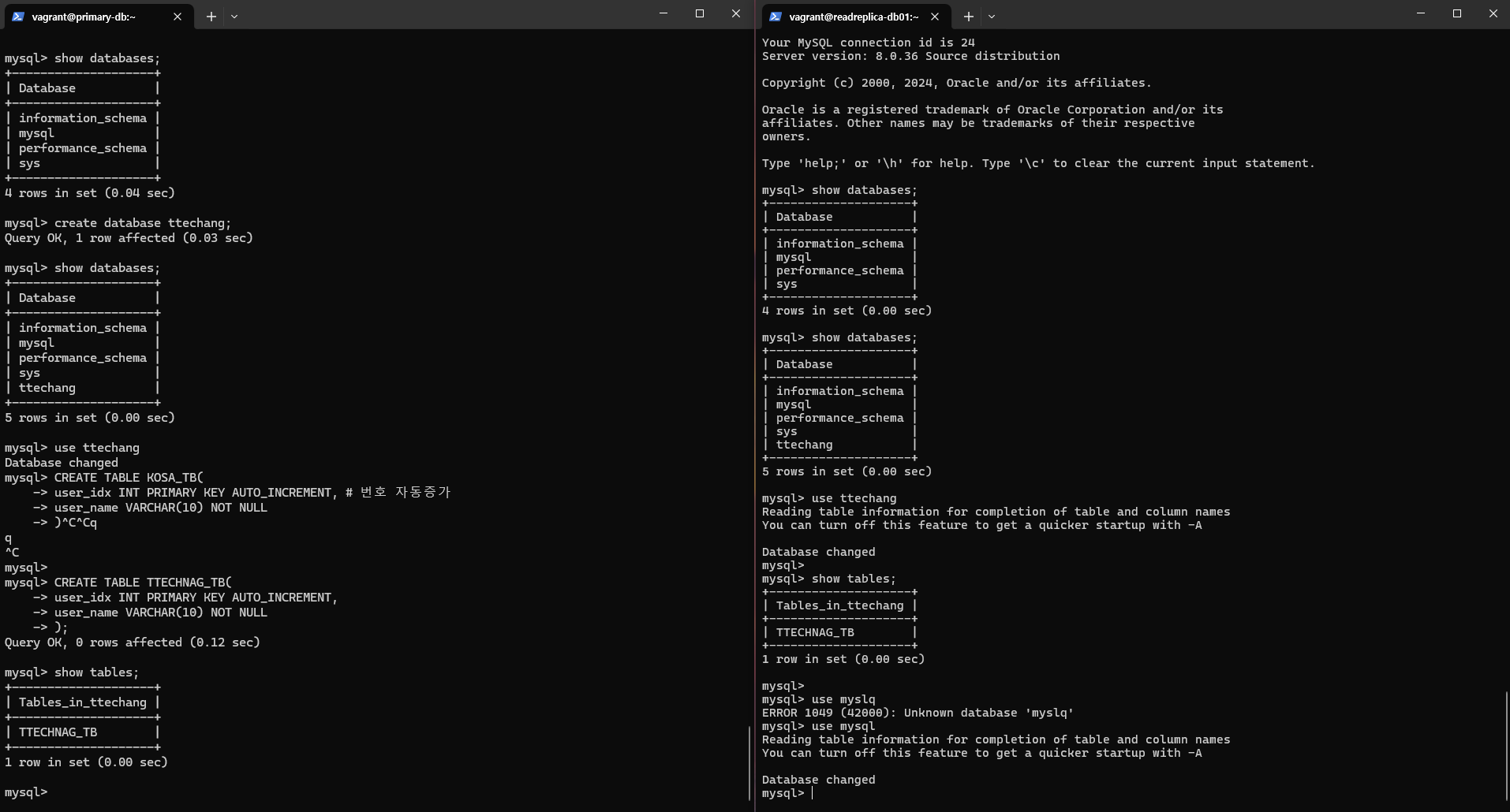 - slave_db 사용자는 슬레이브 서버가 마스터 서버로부터 데이터를 복제할 수 있도록 허용