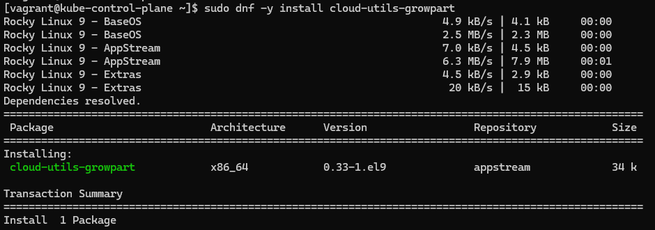 $ sudo dnf -y install cloud-utils-growpart => 미할당 영역을 물리 파티션에 할당하기 위해, growpart 기능이 필요