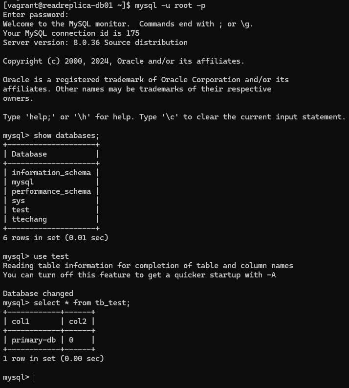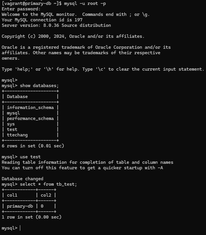 - 트랜잭션 내에서 SELECT @@hostname을 실행하여 결과를 확인함으로써, 트랜잭션을 시작한 서버가 PRIMARY 서버인지 확인할 수 있습니다.