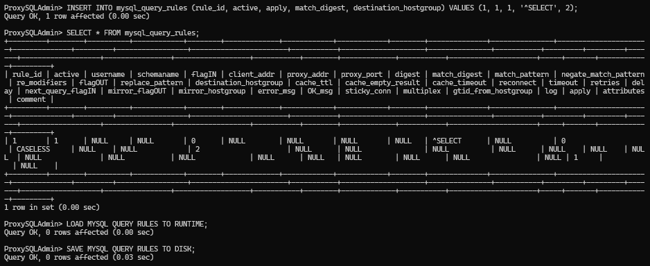 ProxySQLAdmin> LOAD MYSQL QUERY RULES TO RUNTIME;