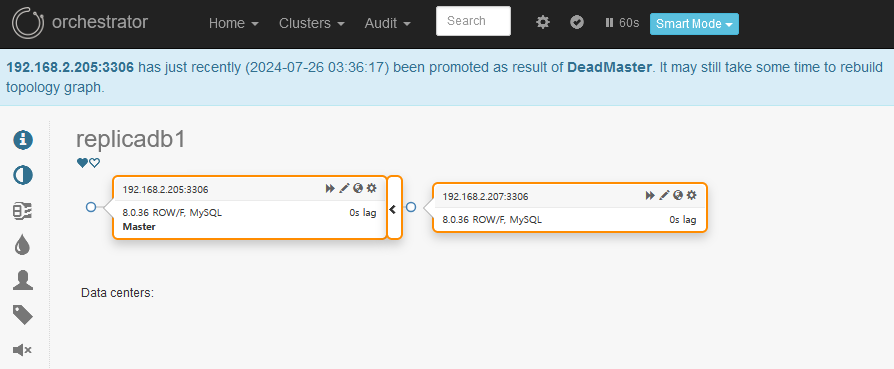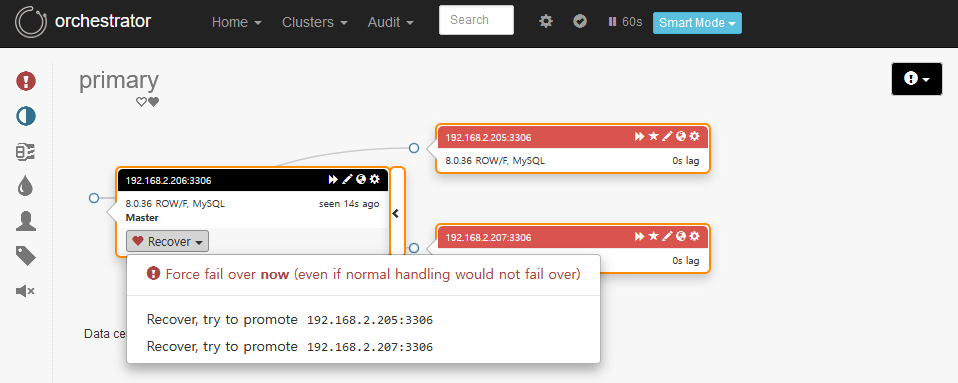 - Orchestrator를 사용하여 자동 장애 조치(failover) 후, 원래의 마스터가 다시 가동되더라도 자동으로 새로운 마스터로 승격되지는 않습니다.