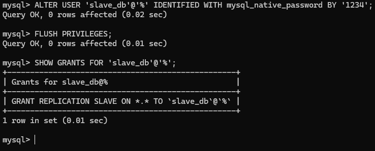 ALTER USER 'slave_db'@'%' IDENTIFIED WITH mysql_native_password BY 'password';