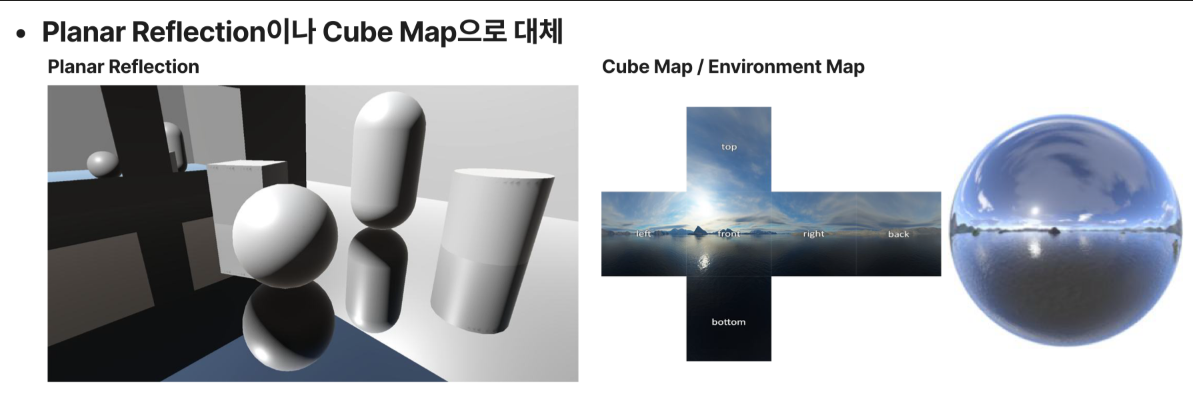 뷰포트 제한 : 카메라에 보이지 않는 물체는 반사에 포함되지 않는다.