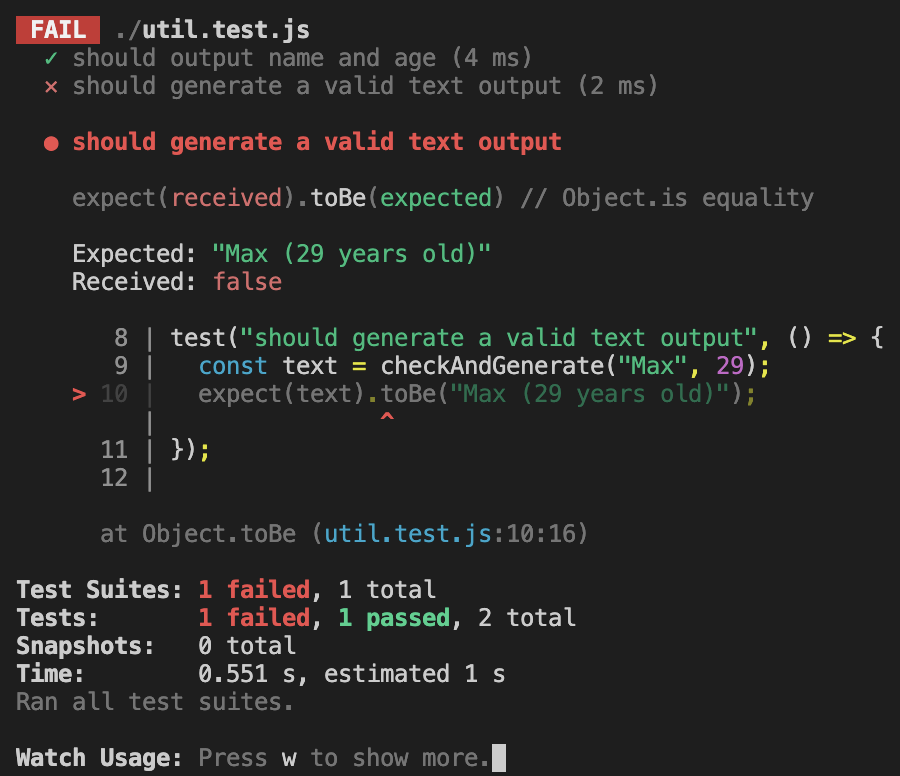 (파일을 변경하고 저장하면 Jest가 자동으로 테스트를 재실행)