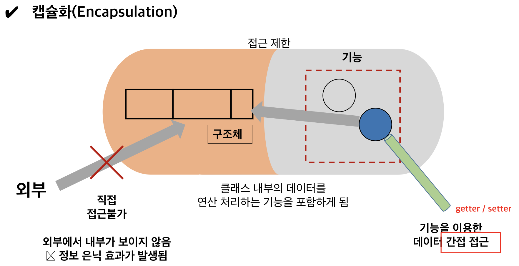 클래스의 가장 중요한 목적인 데이터의 직접 접근제한을 원칙으로 하여