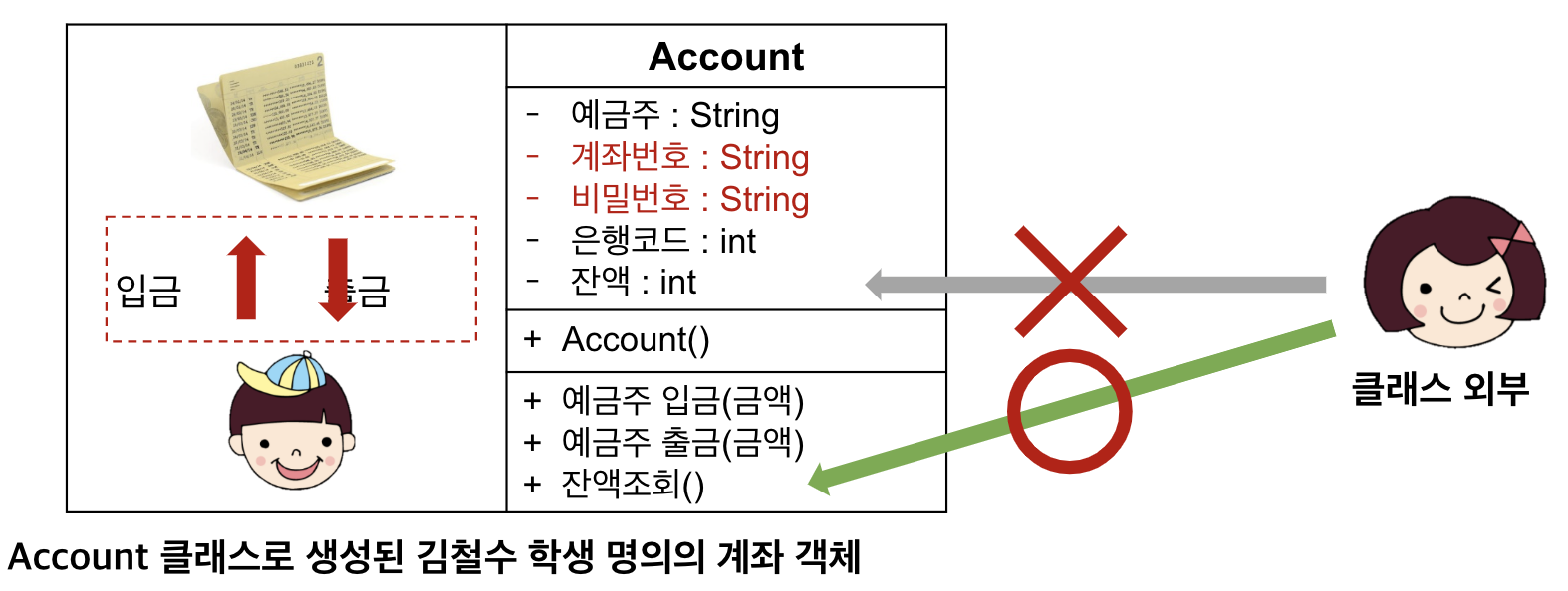 클래스 외부에서 데이터의 직접적인 접근을 막고,