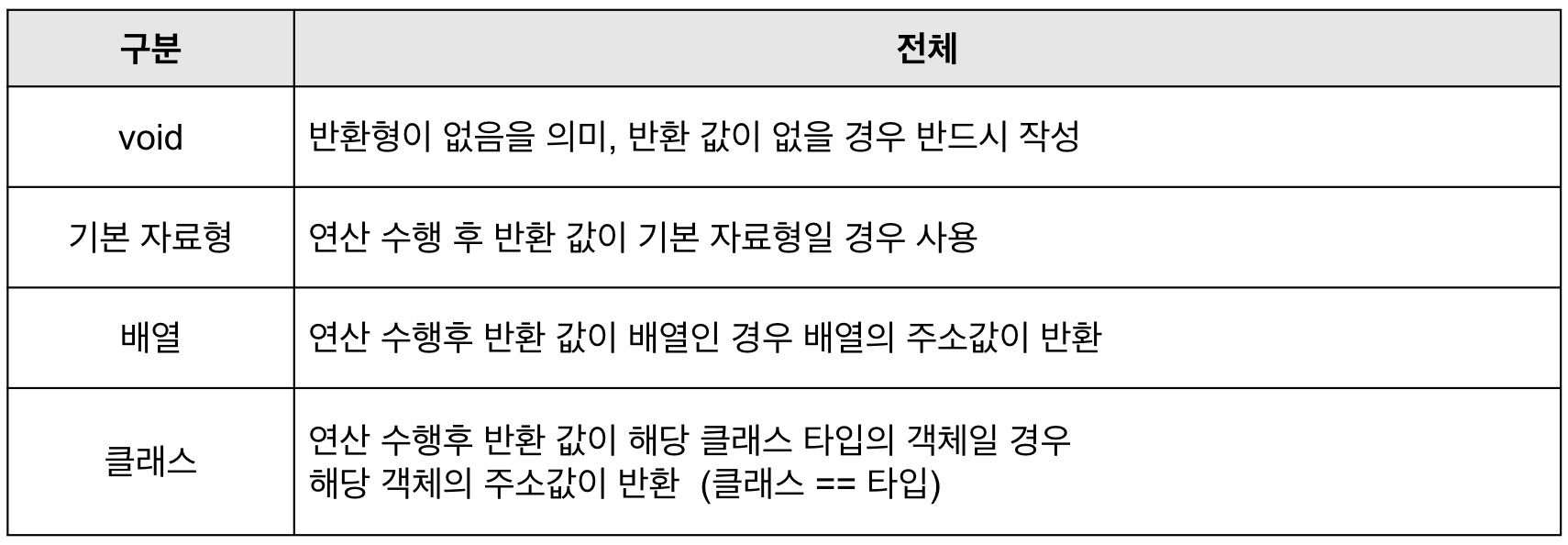 //반환명은 자료형 or void