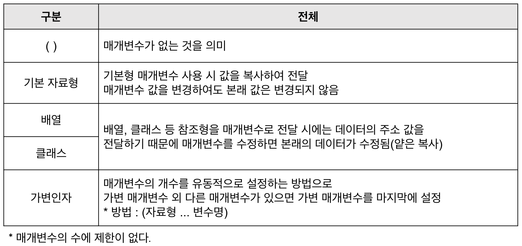 전달값,결과값 둘다 없을 수도 있다.