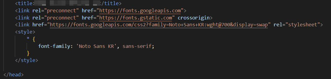h1, h2, h3{ font-family: 'Noto Sans KR', sans-serif; }