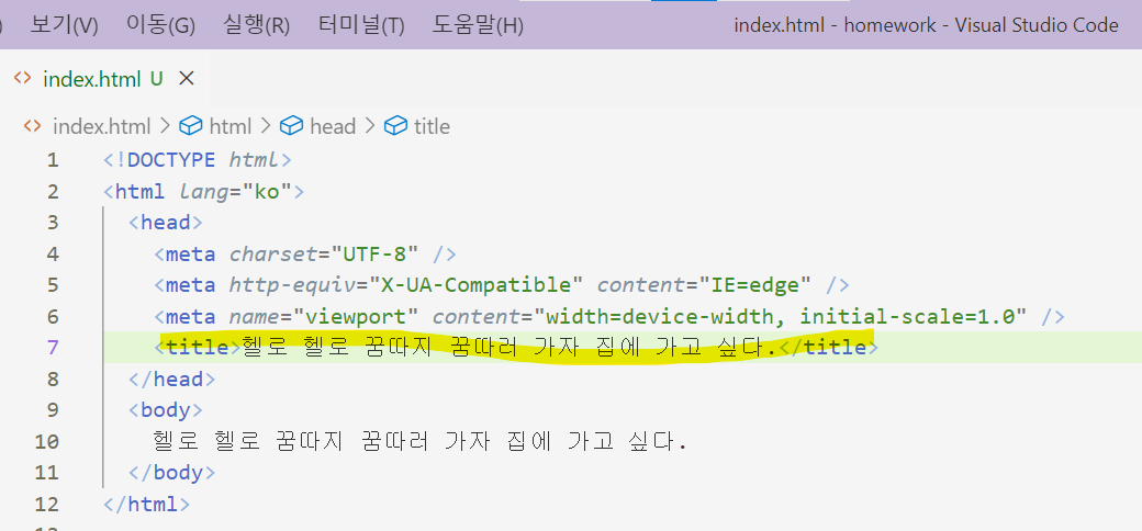 반면에 <title>에 Documents 대신에 다른 값을 입력한다면