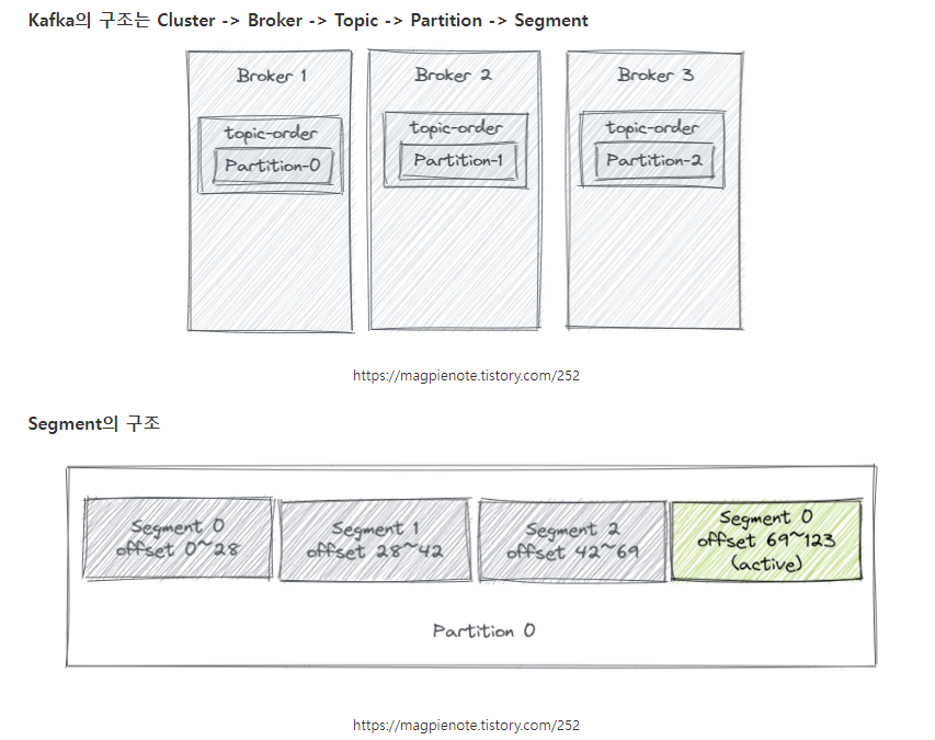 - 한개의 클러스터는 여러개의 브로커로 이루어져 있다.