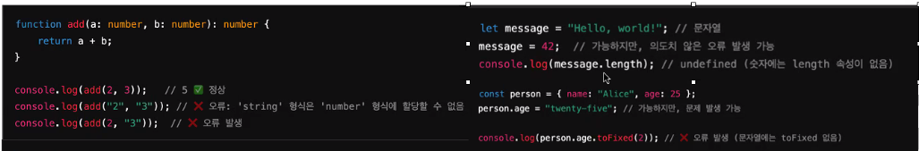 왼쪽이 정적, 오른쪽이 동적 타이핑