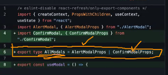 show, handleClose 2개의 타입을 선언, 2개의 props를 넘겨받는 구조