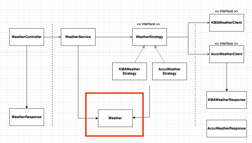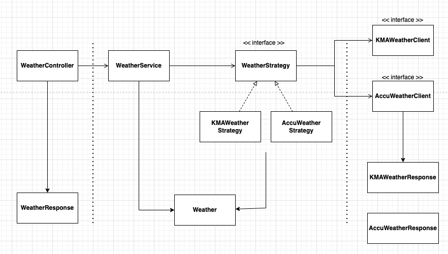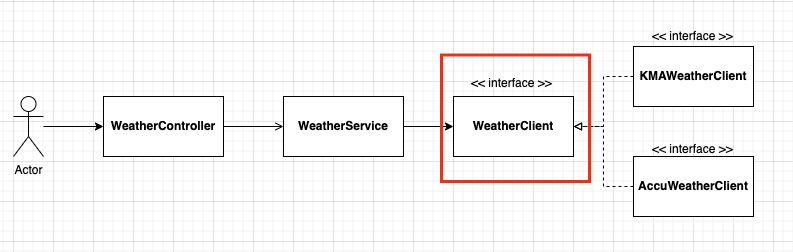 클라이언트인 WeatherService는 날씨 open api가 추가되어도 영향을 받지 않는다. WeatherStrategy