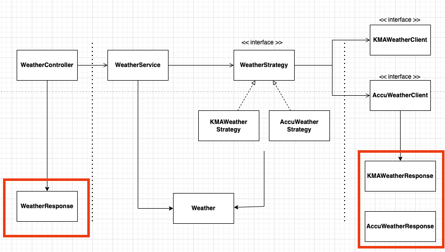 dduikka 프로젝트의 날씨 도메인의 맥락에 맞는 집합이 Weather 도메인 모델이었으니까, 당연스럽게 만들었던 아래 DTO에 대한 고민을 다시 하게 되었다.