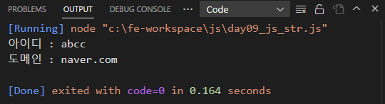console.log(strSplit); //[ 'abcc', 'naver.com' ]์ด ์ถ๋ ฅ๋๋ค.