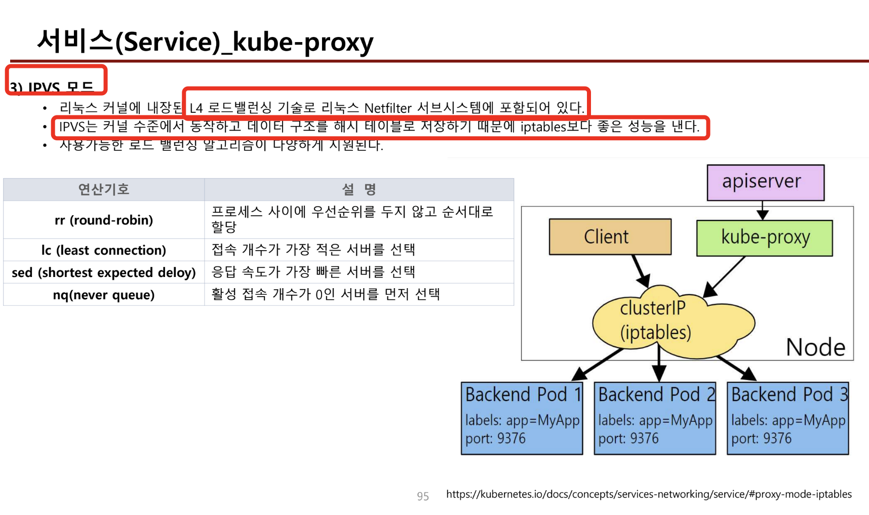 - iptable을 이용하는 방식은 트래픽 처리를 iptable이 처리하기 때문에 처리 성능이 더 좋다.