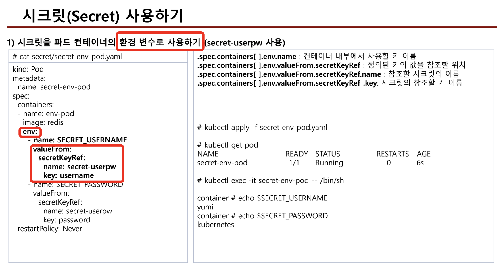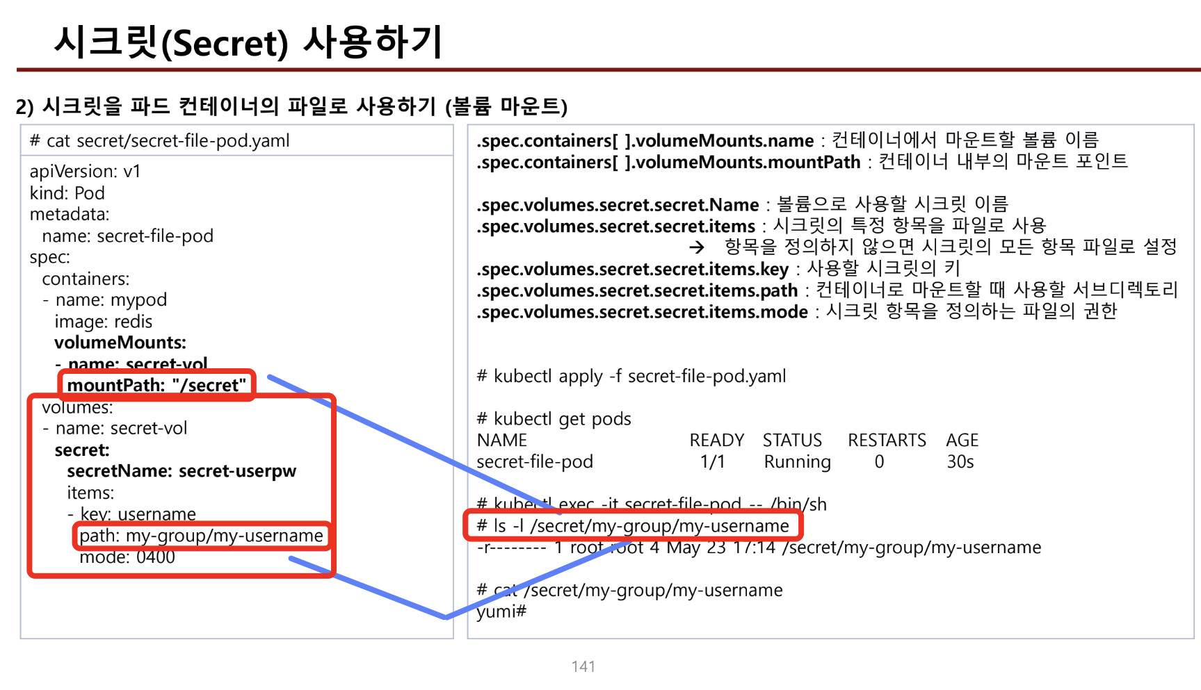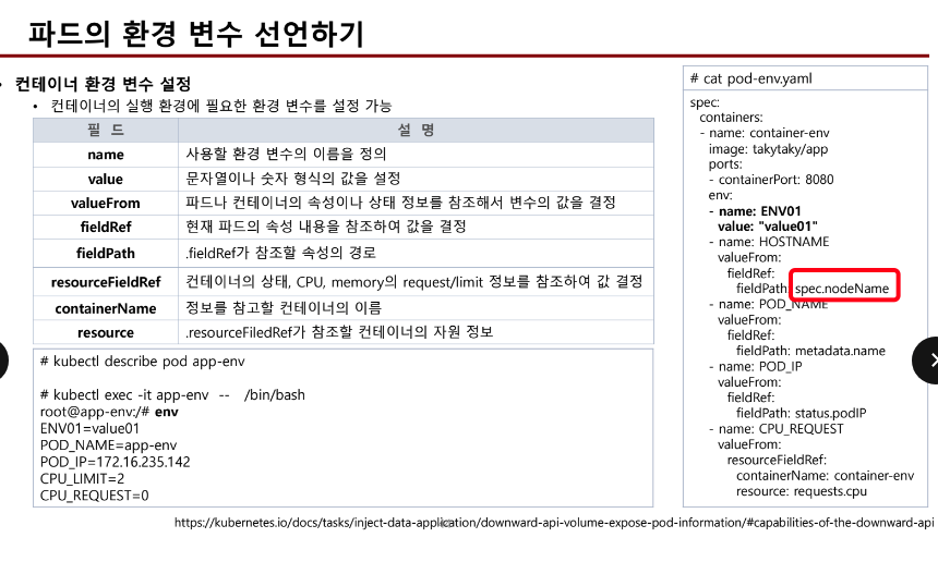 - 환경변수 filedPath의 값은 pod를 생성하면 spec 하위에서 볼수 있는 값이다.