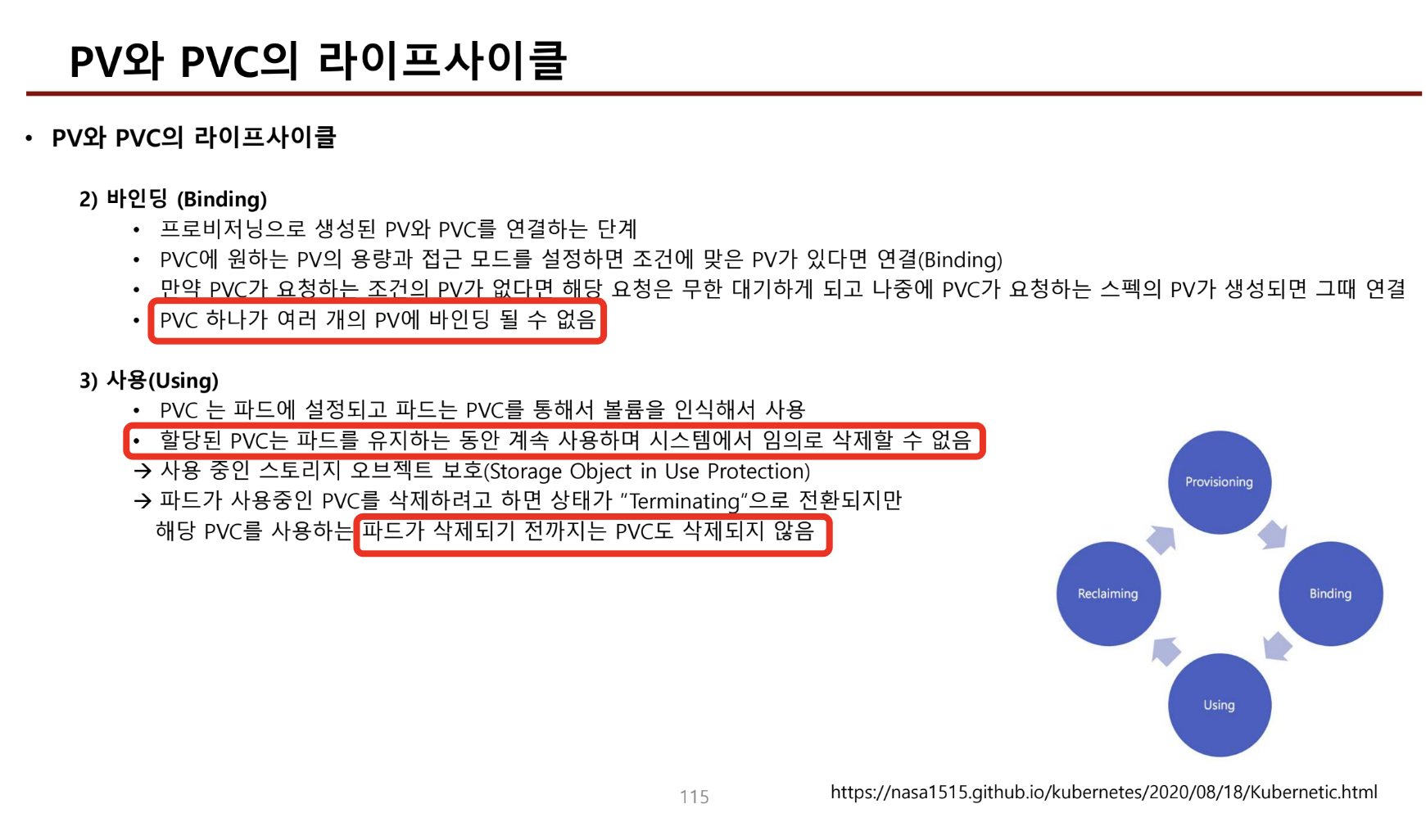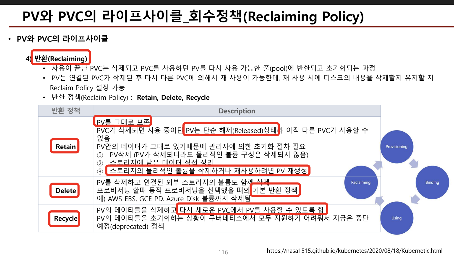 - pv의 Released 상태는 pvc가 삭제되었지만, pv는 아직 초기화되지 않은 상태를 말한다.