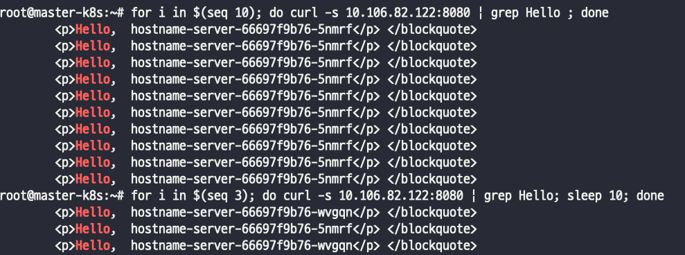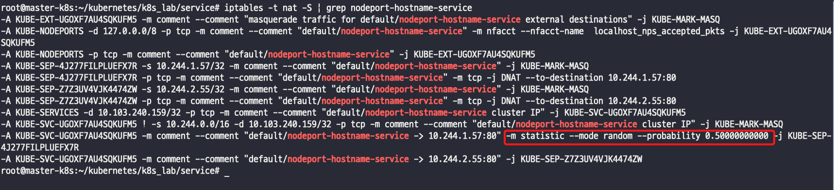 - iptables에 0.5 확률로 pod내 가기 때문에 라운드로빈으로 작동