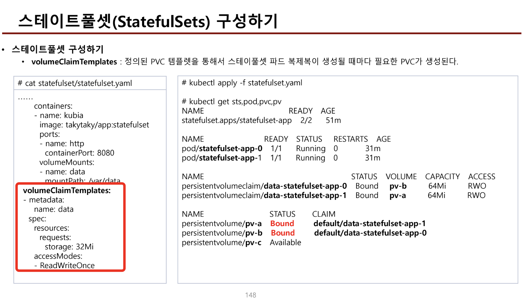- volumeClaim도 템플릿을 통해 동적으로 만들어진다.