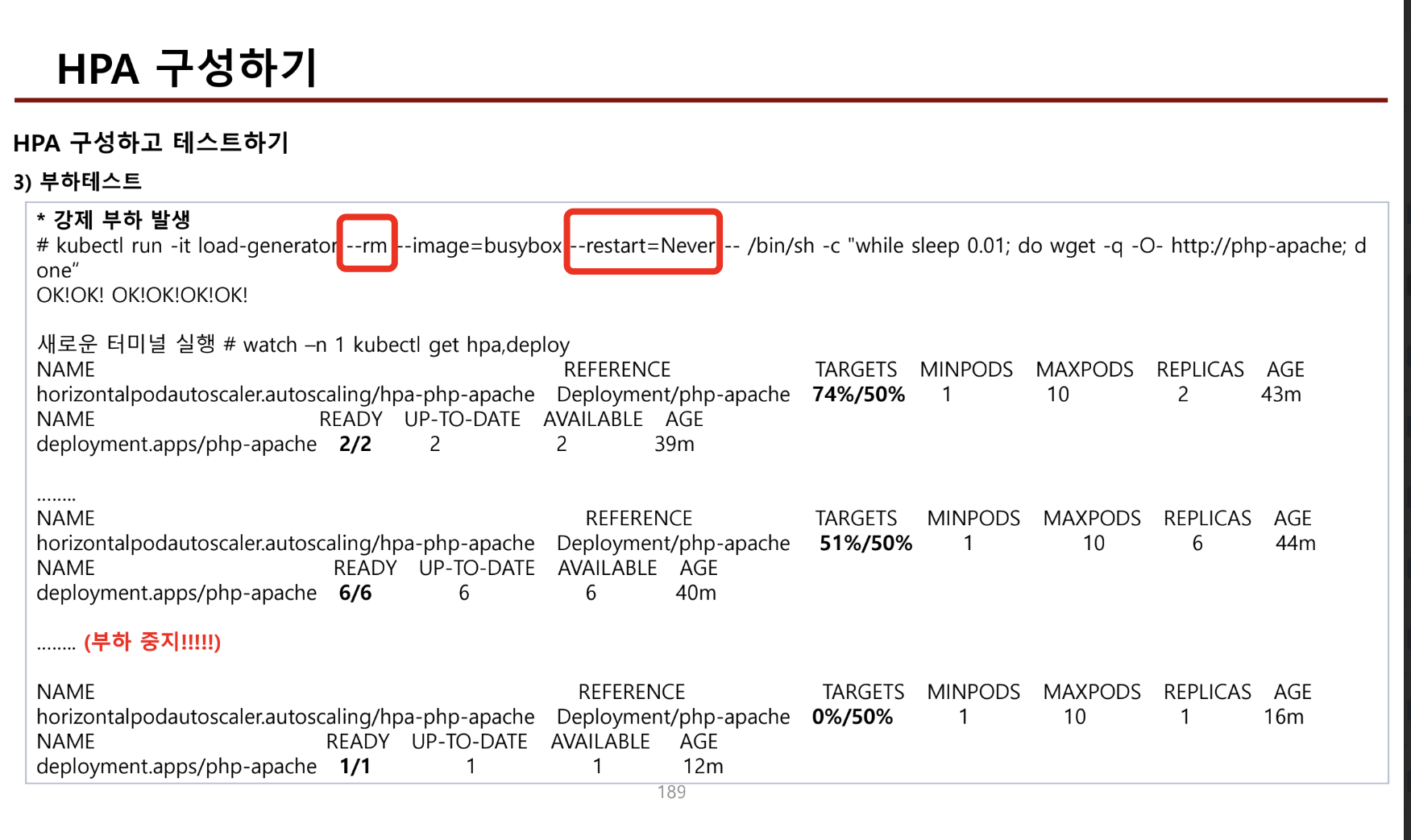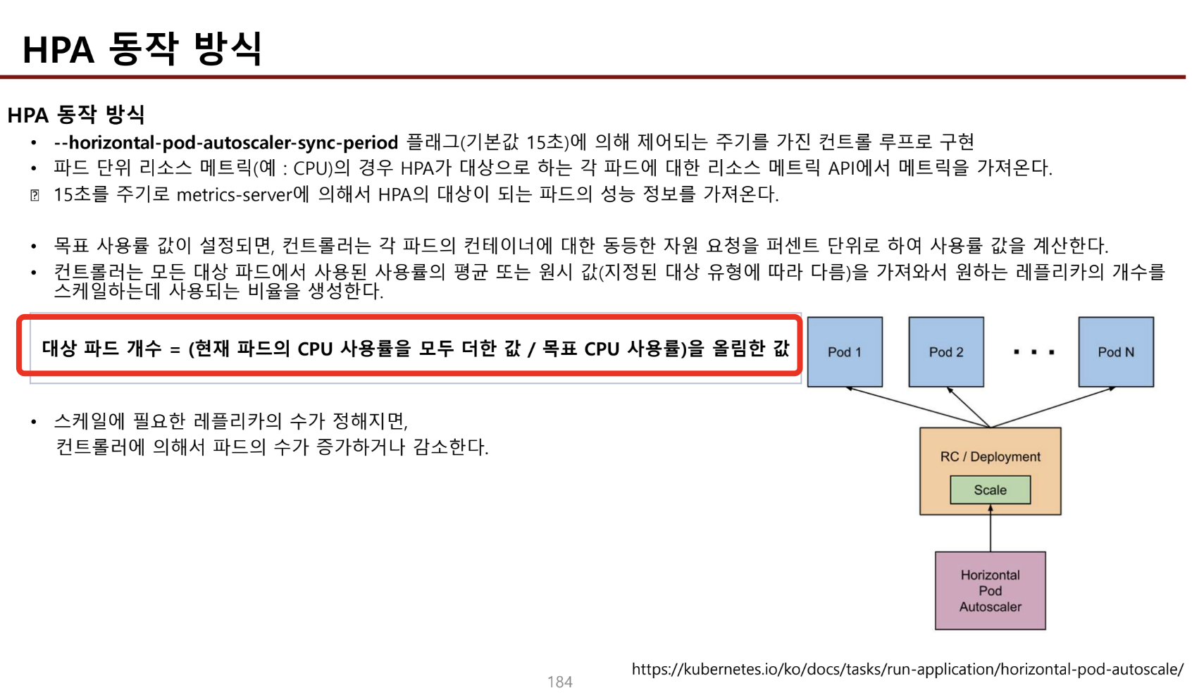 - hpa는 새로운 노드가 생성되어야 생성되는 데몬셋에는 적용할 수 없다.