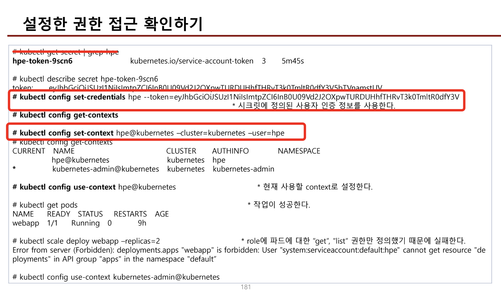 3) k config set-credential sa --token = (sa에 토큰값을 지정한다)