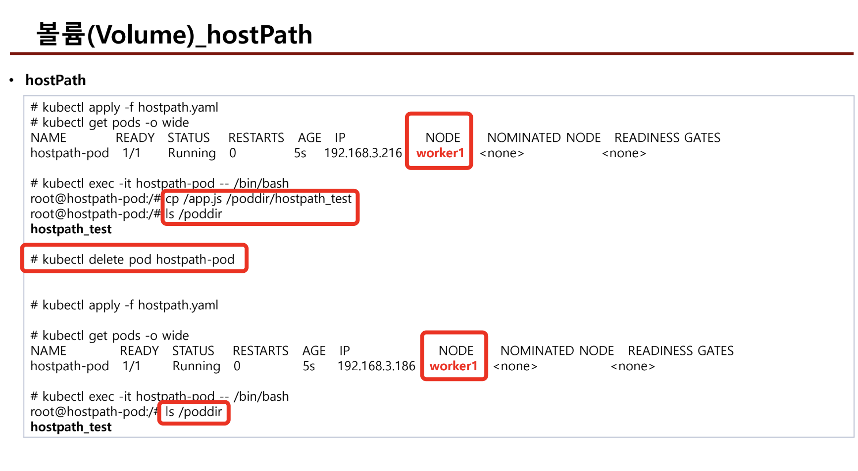 - 당연히 pod를 삭제하면 해당 경로의 파일은 삭제된다.