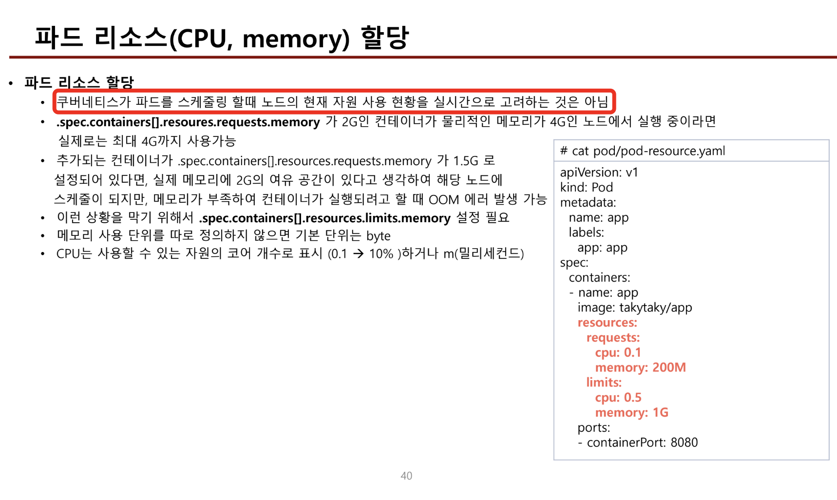 - cpu와 memory 할당대상인 pod만이 쿠버네티스에서 인스턴스이다.