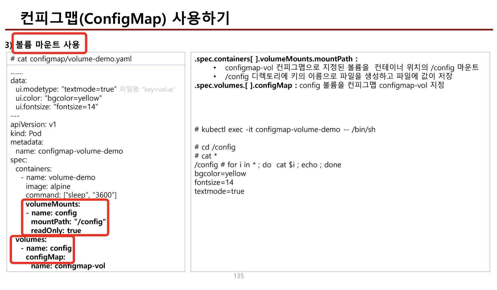 - config맵을 volume으로 사용하면 읽기전용으로 사용된다.