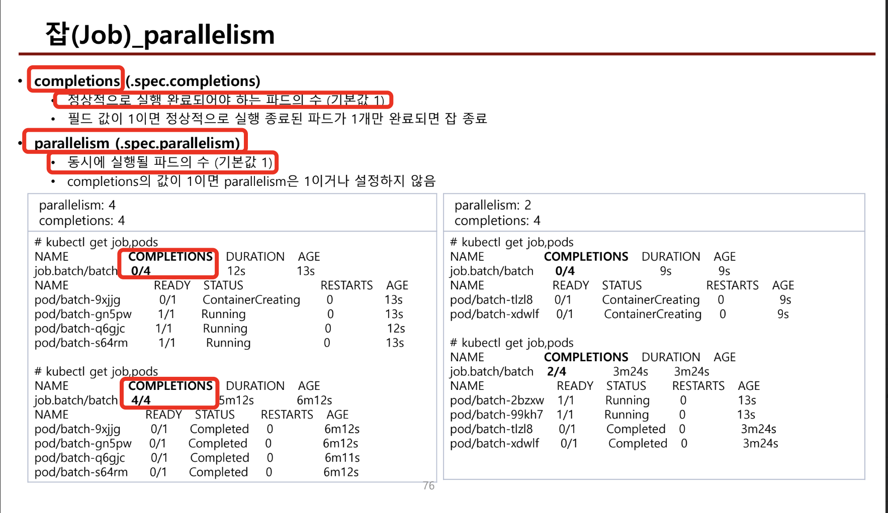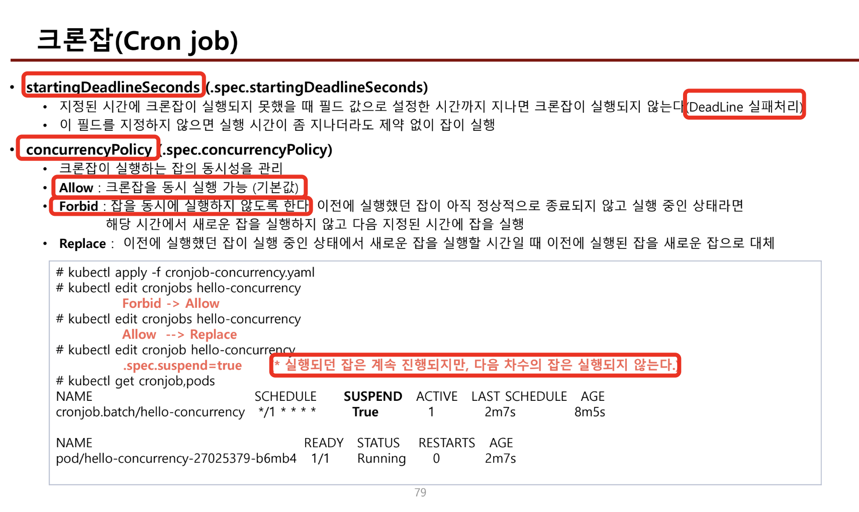- activeDeadlineSeconds : 비정상 실행 지나치게 오래 유지되는것을 막는 옵션