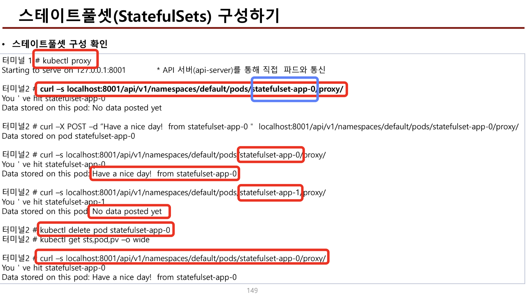 - statefulset은 각각의 pv를 가지기 때문에, 다른 Pv저장한 내용은 보이지 않는다.