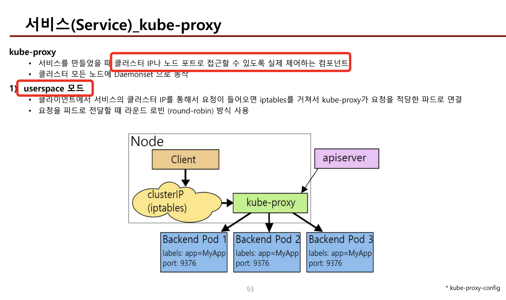 - 과거에는 쿠버네티스 파드(ds이 관리) 중 하나인 kube-proxy가 직접 백엔드 서비스에 라우팅을 담당하여 좋지 않은 방법으로 실행되었음