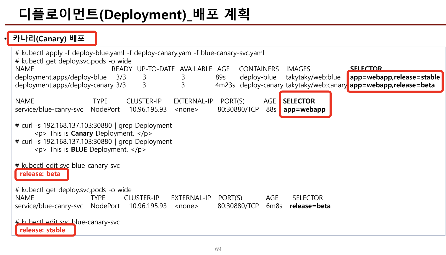 - 카나리배포도 selector를 공통과 각각에 두어, selector 변경만으로 가볍게 구현가능하다.