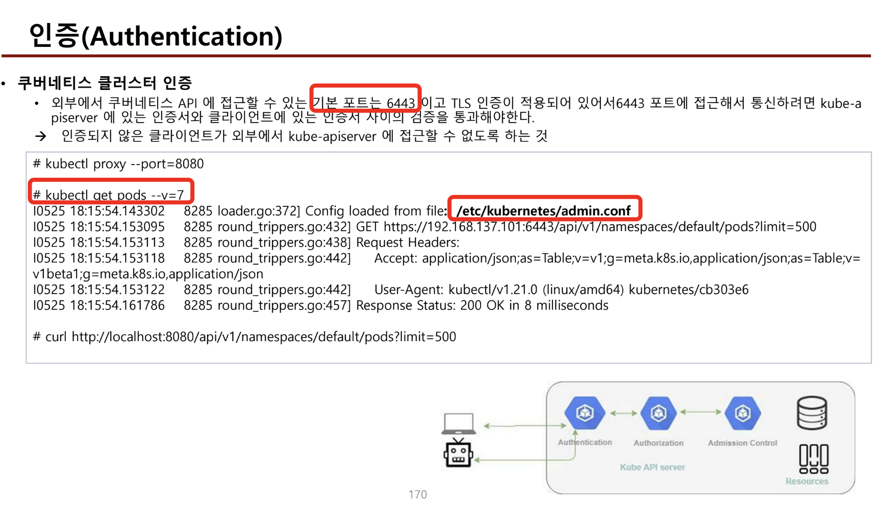 - k get po --v=7 로 k8s api에 요청하는 과정을 볼 수 있다.