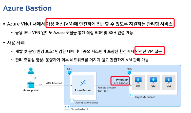 - Azure Bastion 은 완전관리형 서비스로 설정필요없이 사용가능