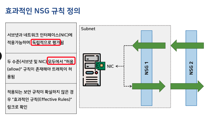 - 별도의 NSG를 만들어서 subnet, vm에 각각 할당하는 것이 좋다.