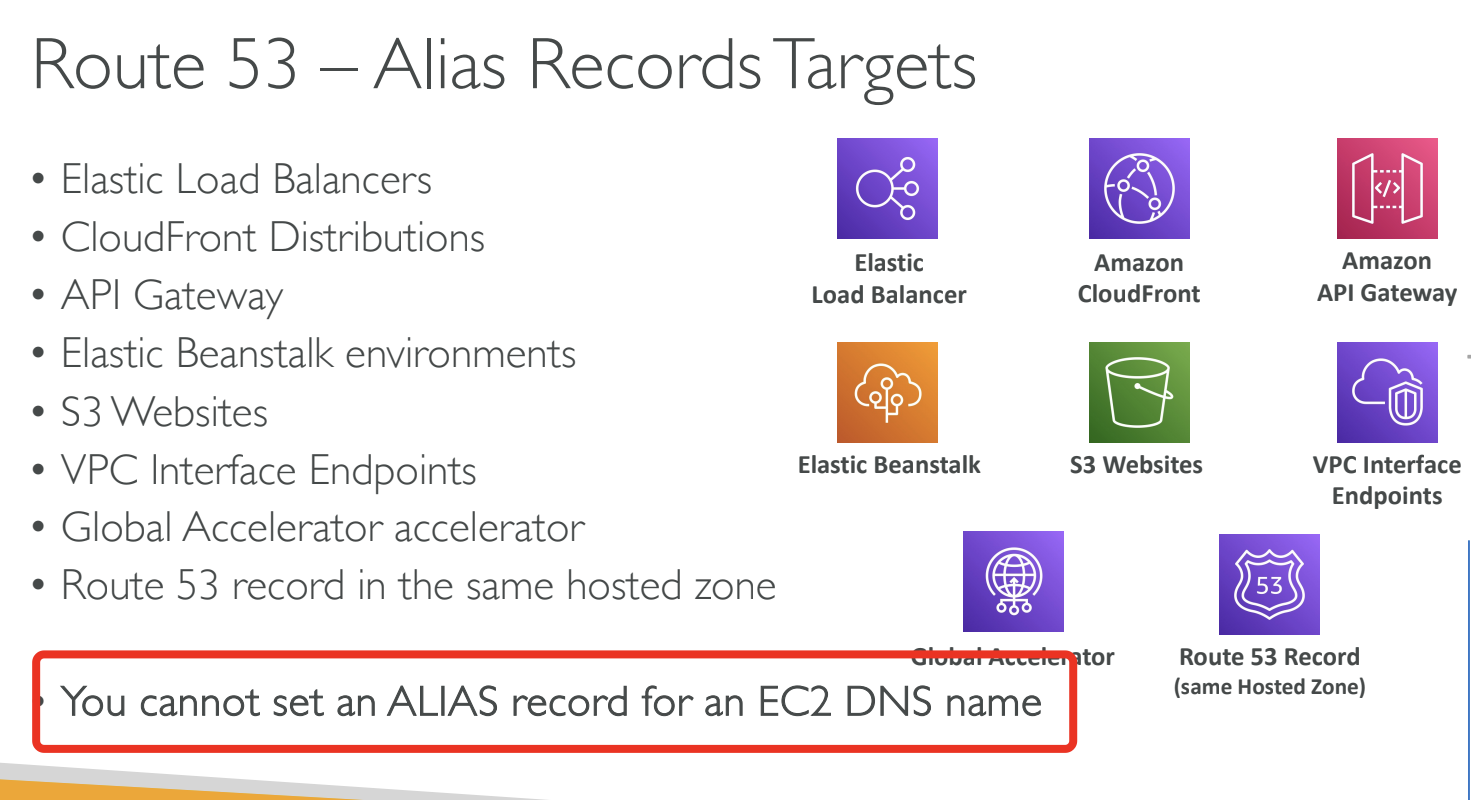 EC2 DNS 이름에 대해서는 별칭 레코드를 설정할 수 없다! EC2 DNS 이름은 별칭 레코드의 대상이 아님!