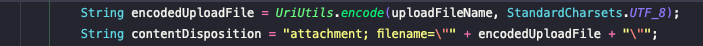 String contentDisposition = "attachment; filename=\"" + encodedUploadFile + "\"";