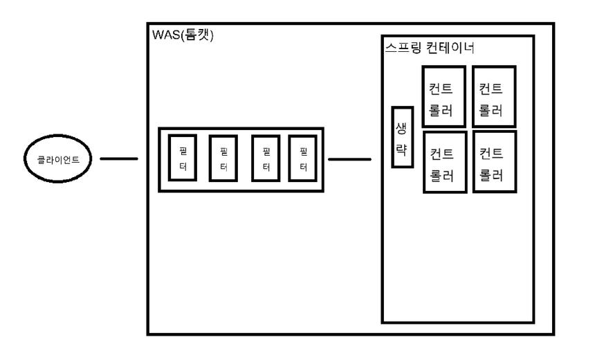 사용자의 요청은 필터단을 모두 거친 후 스프링 컨테이너에서 컨트롤러에 접근하게 된다. 이때 컨트롤러 바로 전에 DispatcherServlet이라는 서블릿이 존재하는데 (위 사진 '생략' 부분에 존재), 사용자의 요청과 알맞은 컨트롤러를 찾는 역할을 수행한다.