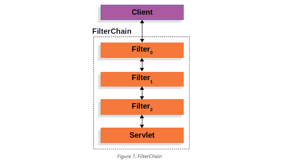 스프링 시큐리티 로직은 여러개의 필터들이 나열된 필터 체인 형태로 구성되어 있다.