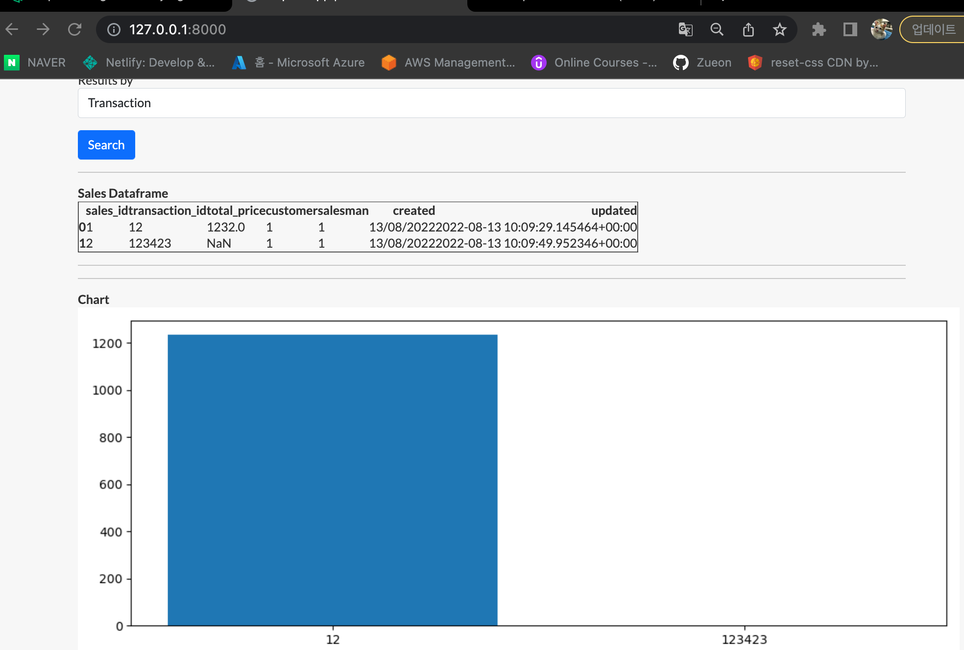 모든 sales를 날짜에 따라 필터링한다. 필터링 후 데이터가 존재한다면 sales 쿼리세트 값을 이용하여 데이터 프레임을 생성한다.