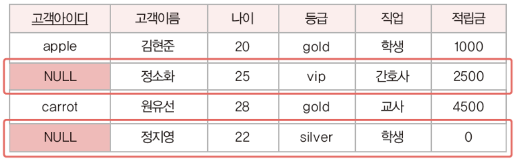 기본키를 구성하는 모든 속성은 널(Null)값을 가질 수 없는 규칙이다.